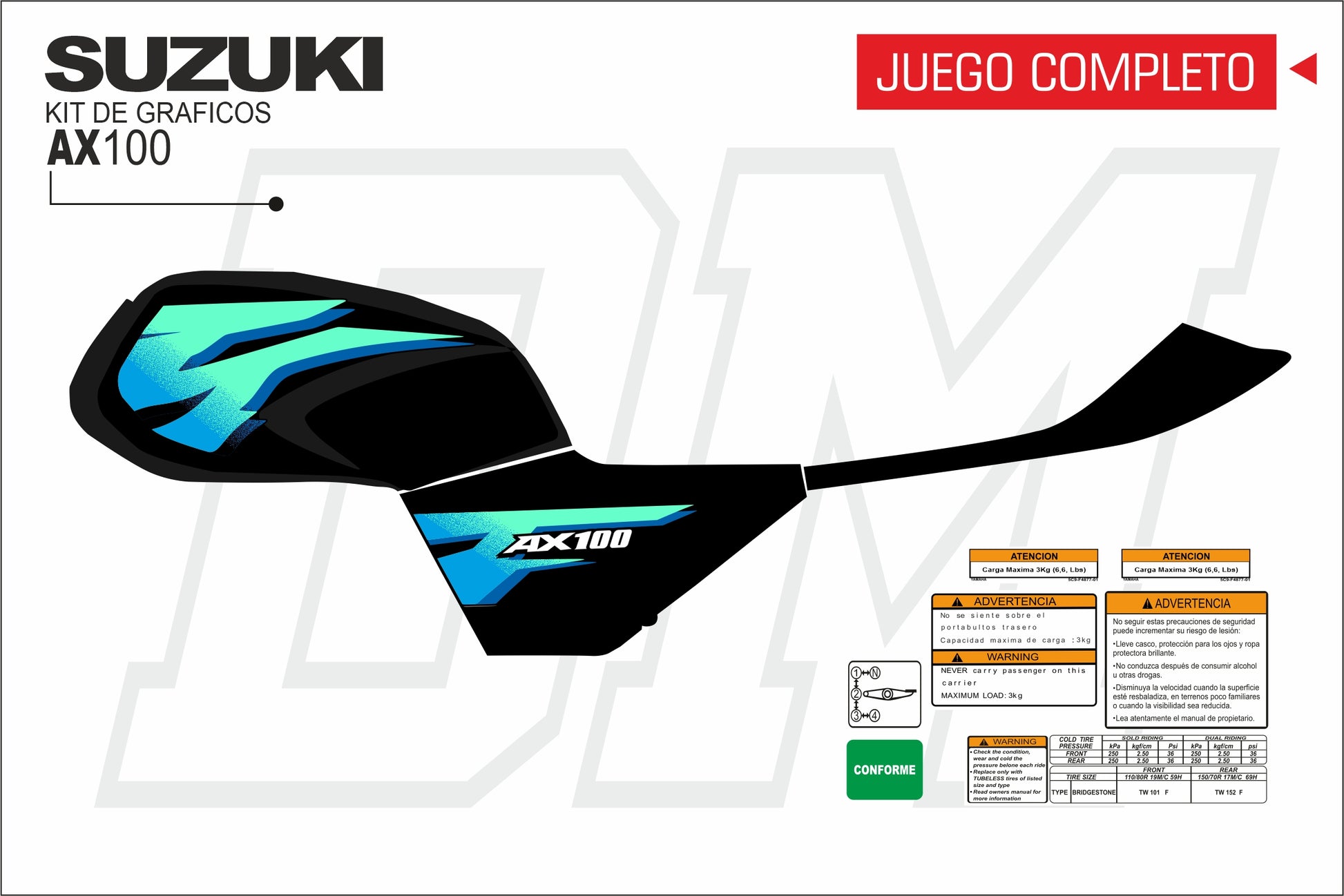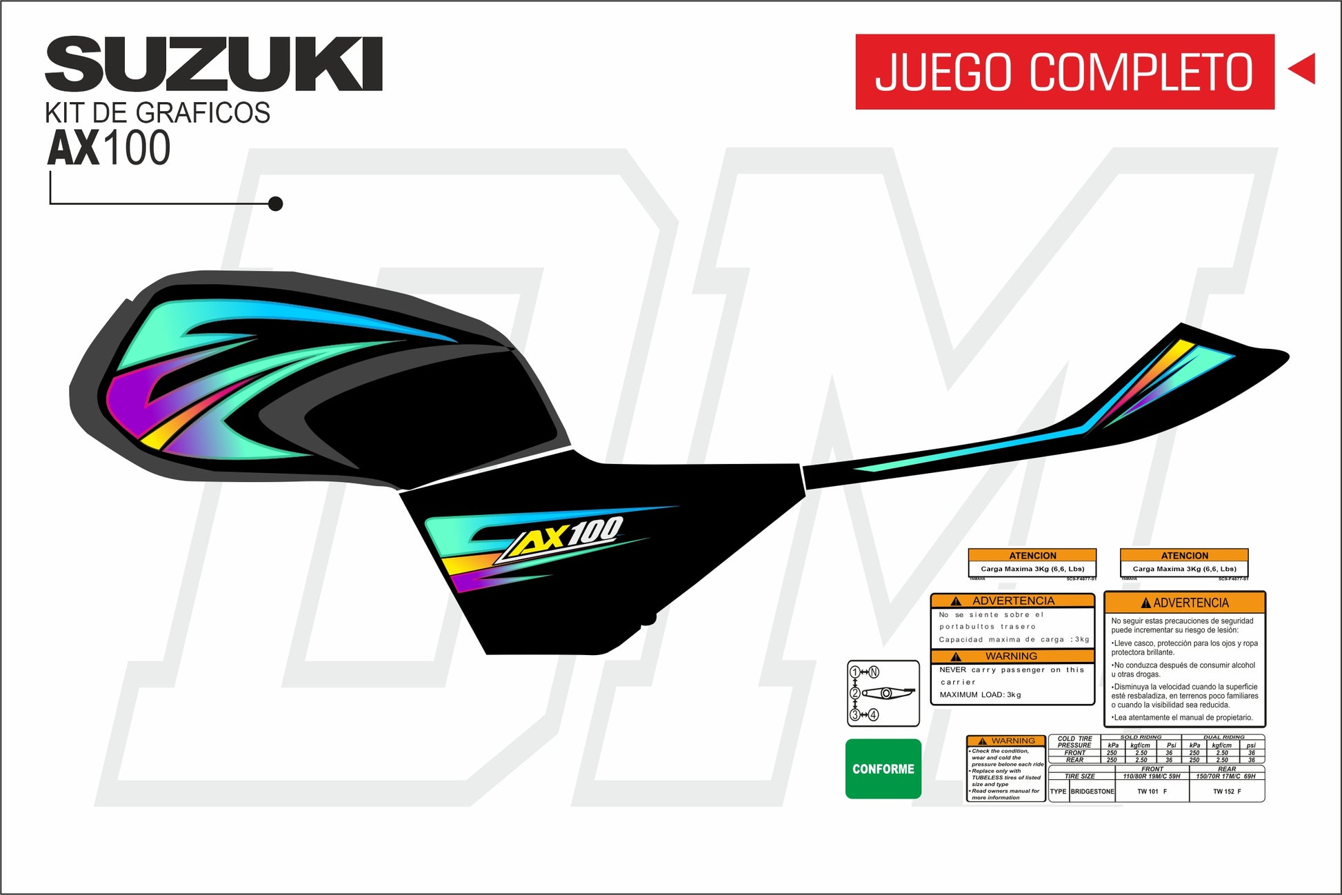 4. **Adhesión fuerte:** Las calcomanías están diseñadas para adherirse firmemente a la superficie de tu moto, asegurando una fijación segura y duradera sin comprometer la pintura original.